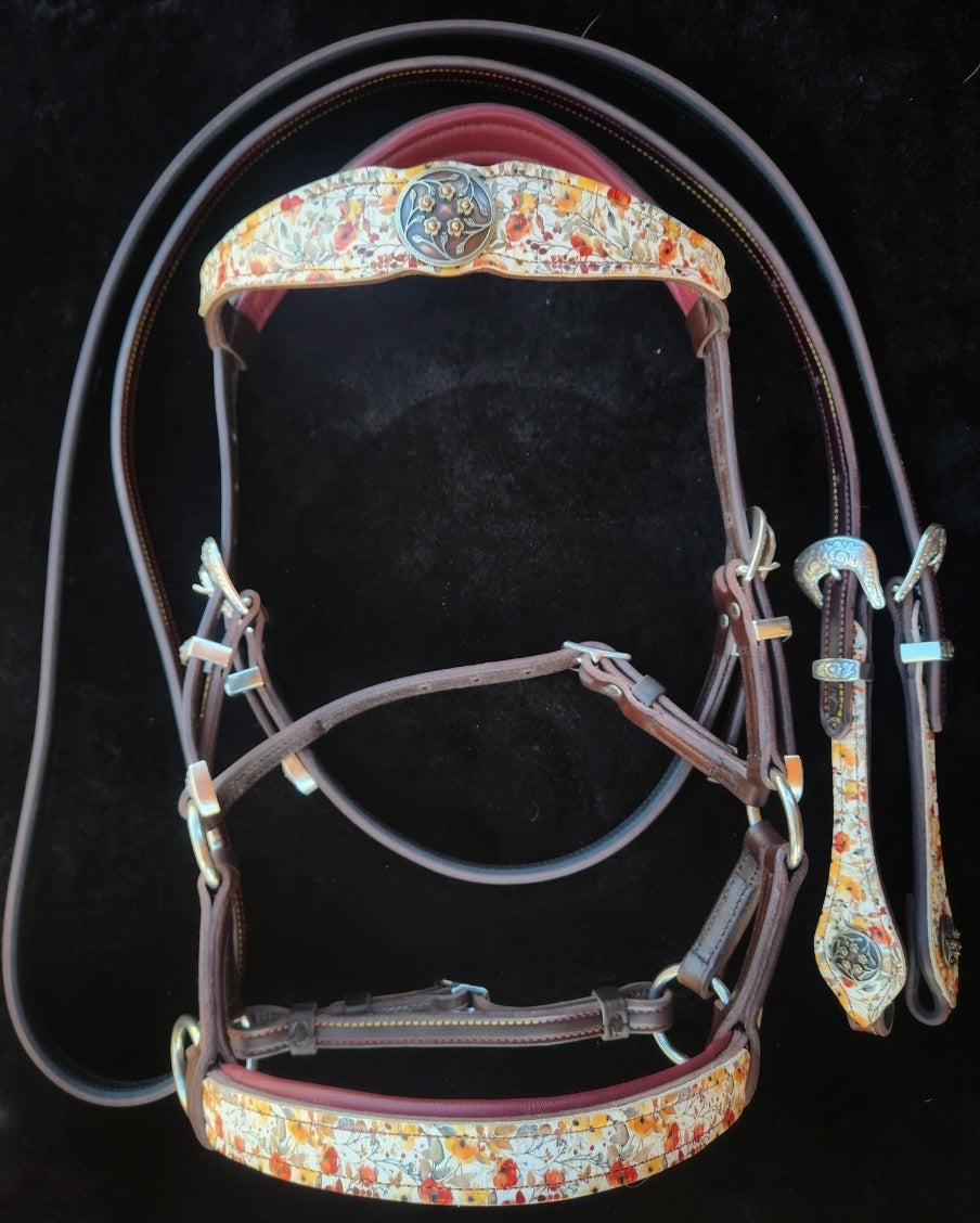Includes a matching 9.5 ft adjustable rein, lined and stitched
