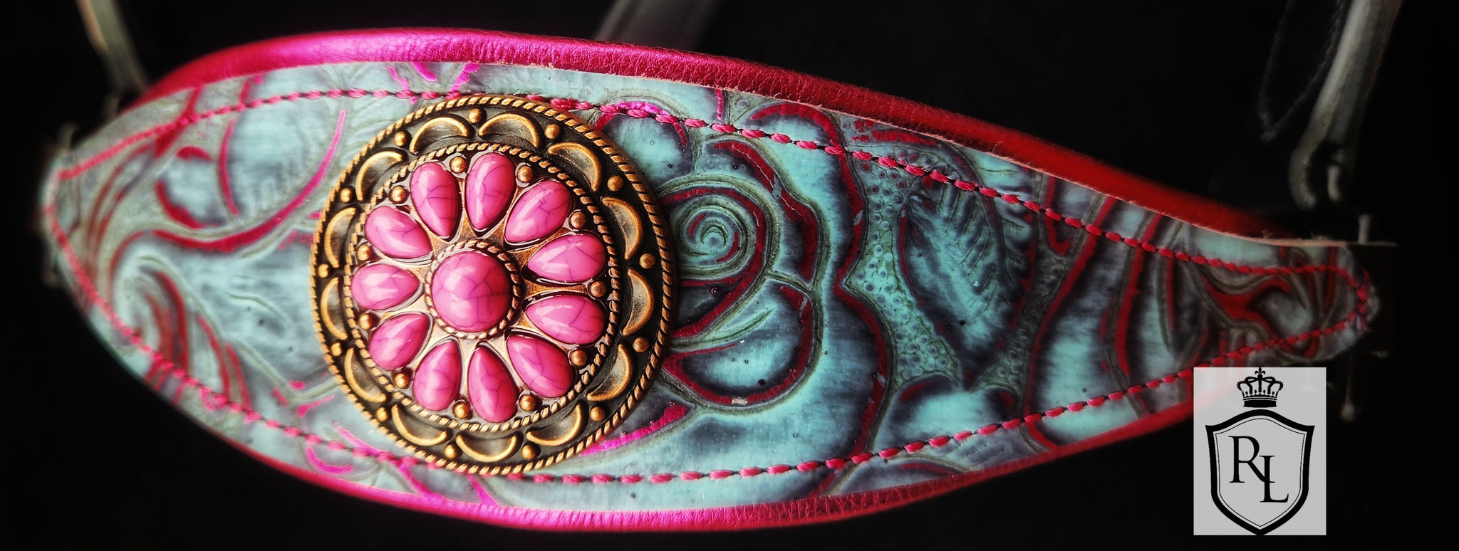 Add a pop of vibrant style to your tack collection! This handcrafted halter features neon pink padding, turquoise and pink rose accents, and aged copper hardware for a stunning, one-of-a-kind look. Built for both beauty and durability, it’s perfect for everyday use or special occasions.