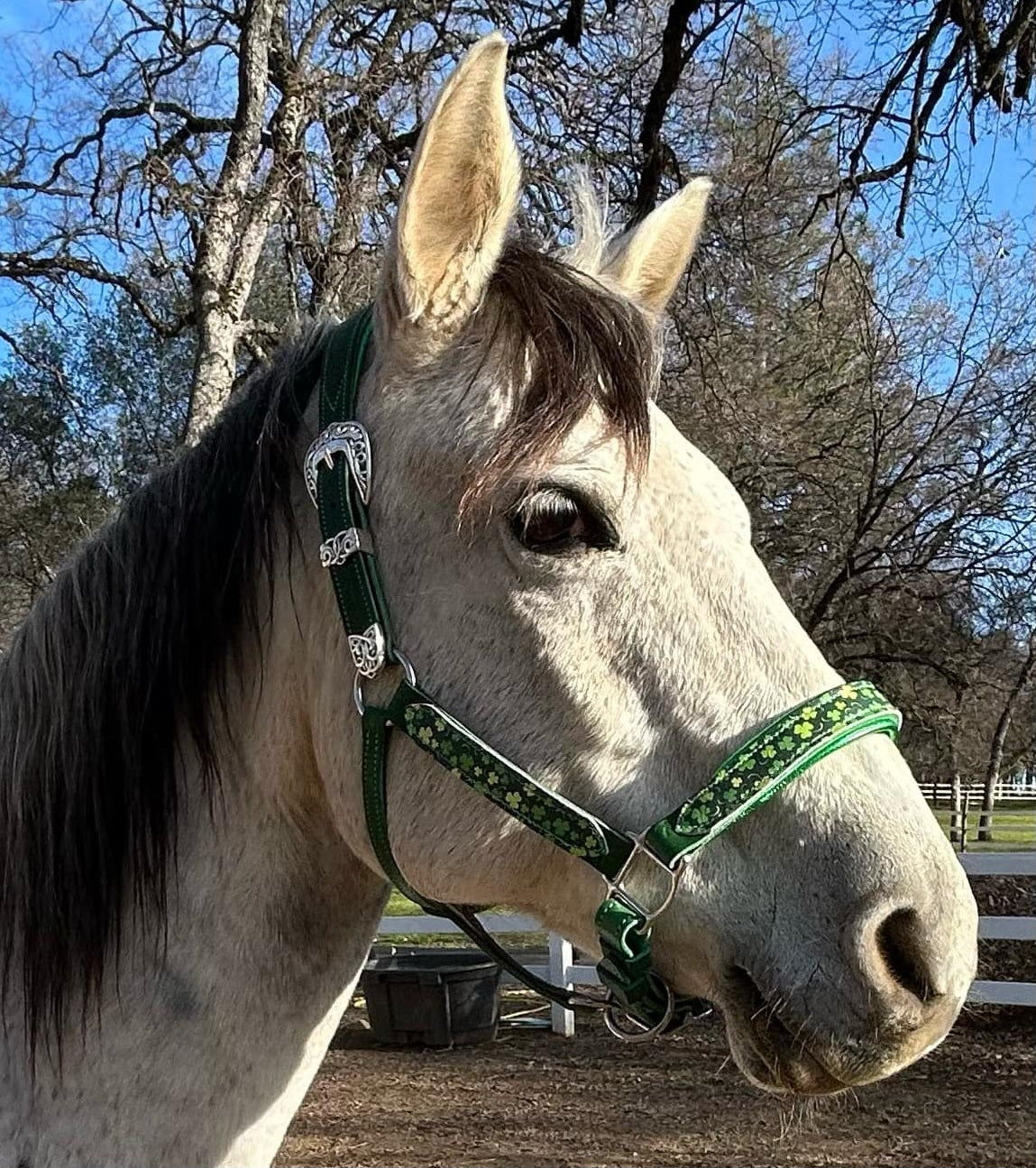 Made with green bridle leather, green padding and thread. Silver celtic knot buckles and a shamrock leather overlay.